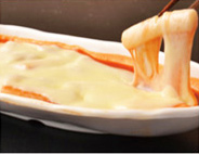 鉄板の上で溶かした熱々トロ〜リの特製チーズに、お肉を絡ませてどうぞ!