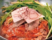 コシのある麺が魅力の韓国冷麺。